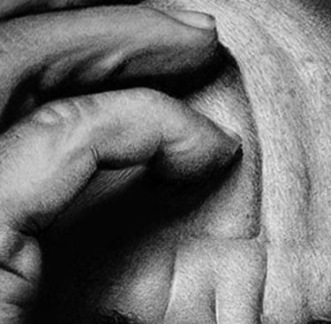 "Rechazo el borde duro de la fotografía clínica. Recuperando el sfumato de Leonardo Da Vinci, logro que el grafito se comporte como humo. La piel de mis retratos no termina en una línea; gira suavemente hacia la sombra, creando una atmósfera que respira."